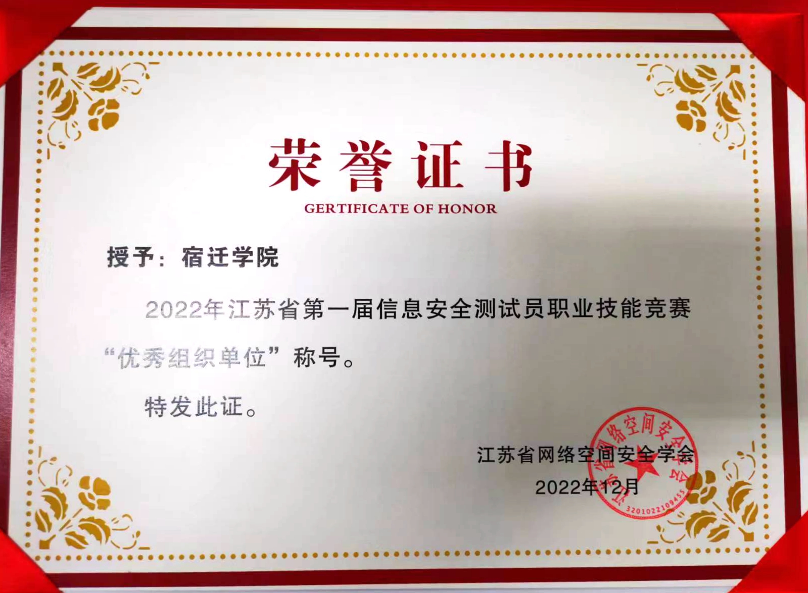 我校荣获江苏省首届信息安全测试员职业技能竞赛“优秀组织单位”称号