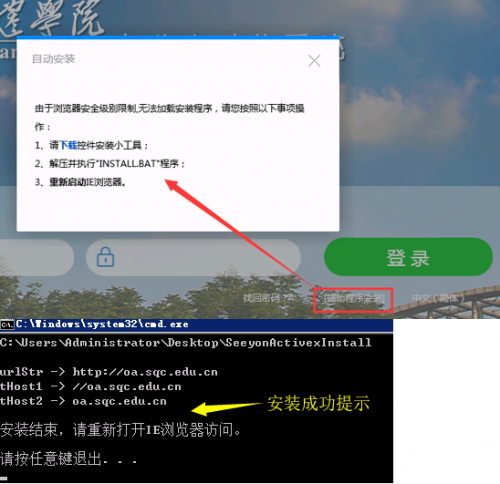 请点击登录按钮下方的“辅助程序安装”,并按照提示进行“控件安装小工具”的安装,如下图