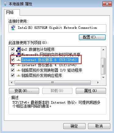 1. Windows Vista/Windows 7/Windows 8/Windows 8.1/Windows10系统已经内置IPv6协议,用户无需再次安装,如图1所示系统已经默认安装IPv6协议。