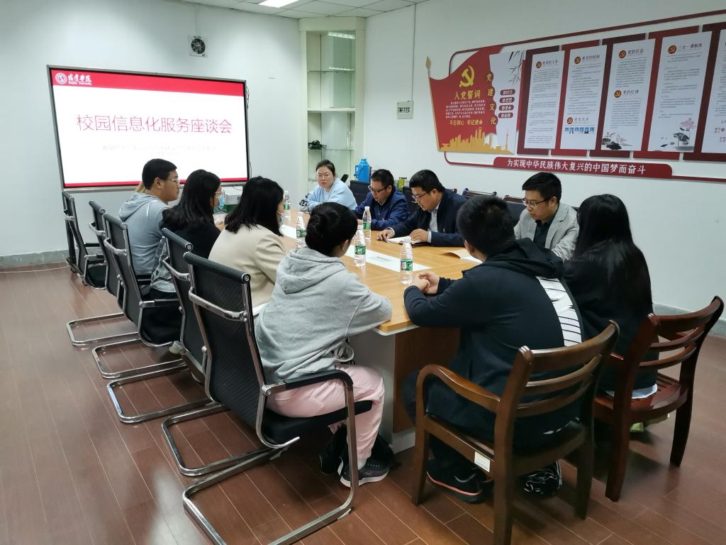 “学党史、守初心、担使命”, 为了进一步做好师生信息化服务工作,了解学生对学校目前信息化建设的意见建议,10月15日下午信息化建设与管理中心党支部举行了“校园信息化服务座谈会”。